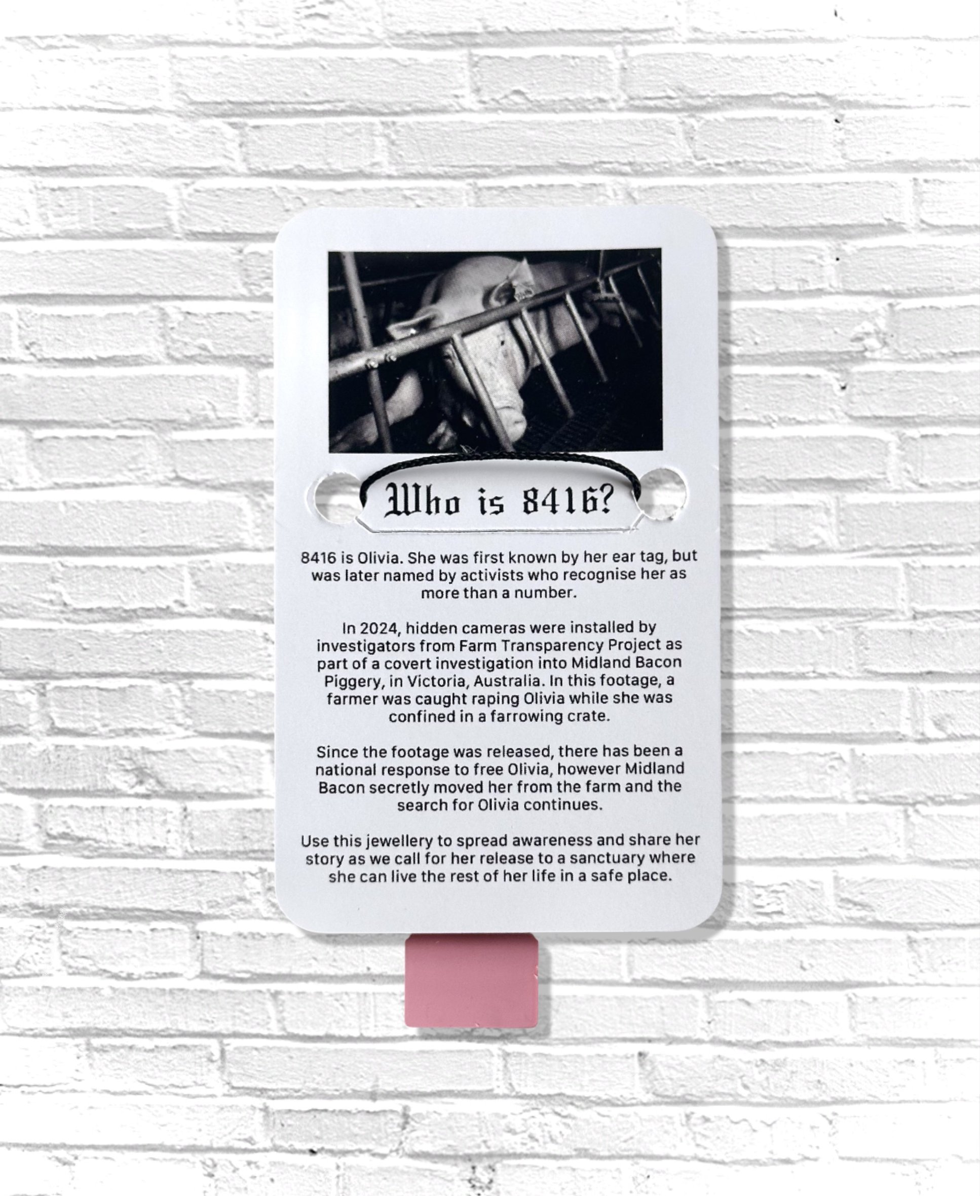 30% of profits go to Farm Transparency Project in support of Olivia